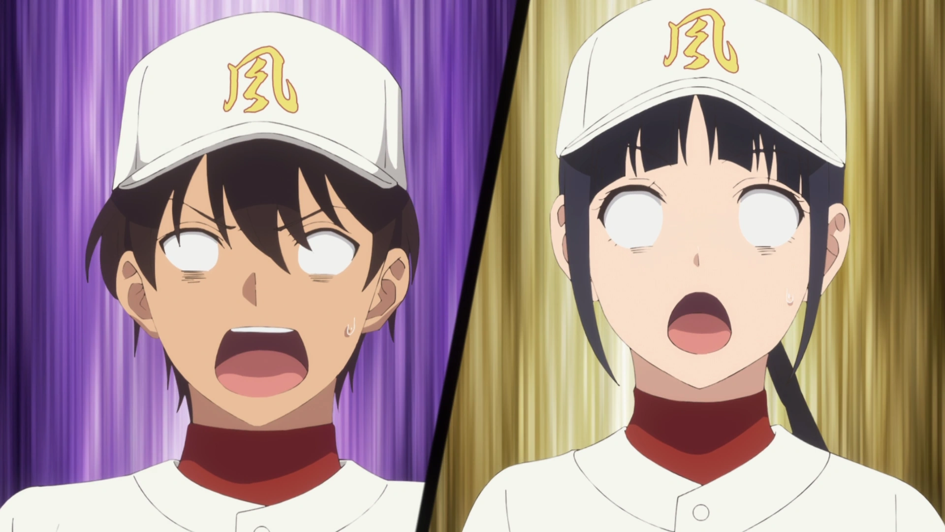 The Oobi game continues. Nishina is substituted by Chisato, who strikes out the 7th, 8th, and 9th of Oobi's batters in a row. The following inning, Fuurin's attack results on two runs scored, but Michiru finally goes to the mound and stops their attack. As Fuurin's attack ends, they prepare to defend against Oobi's top batters again. It's the bottom of fifth, and Fuurin is still losing by 2 - 5.