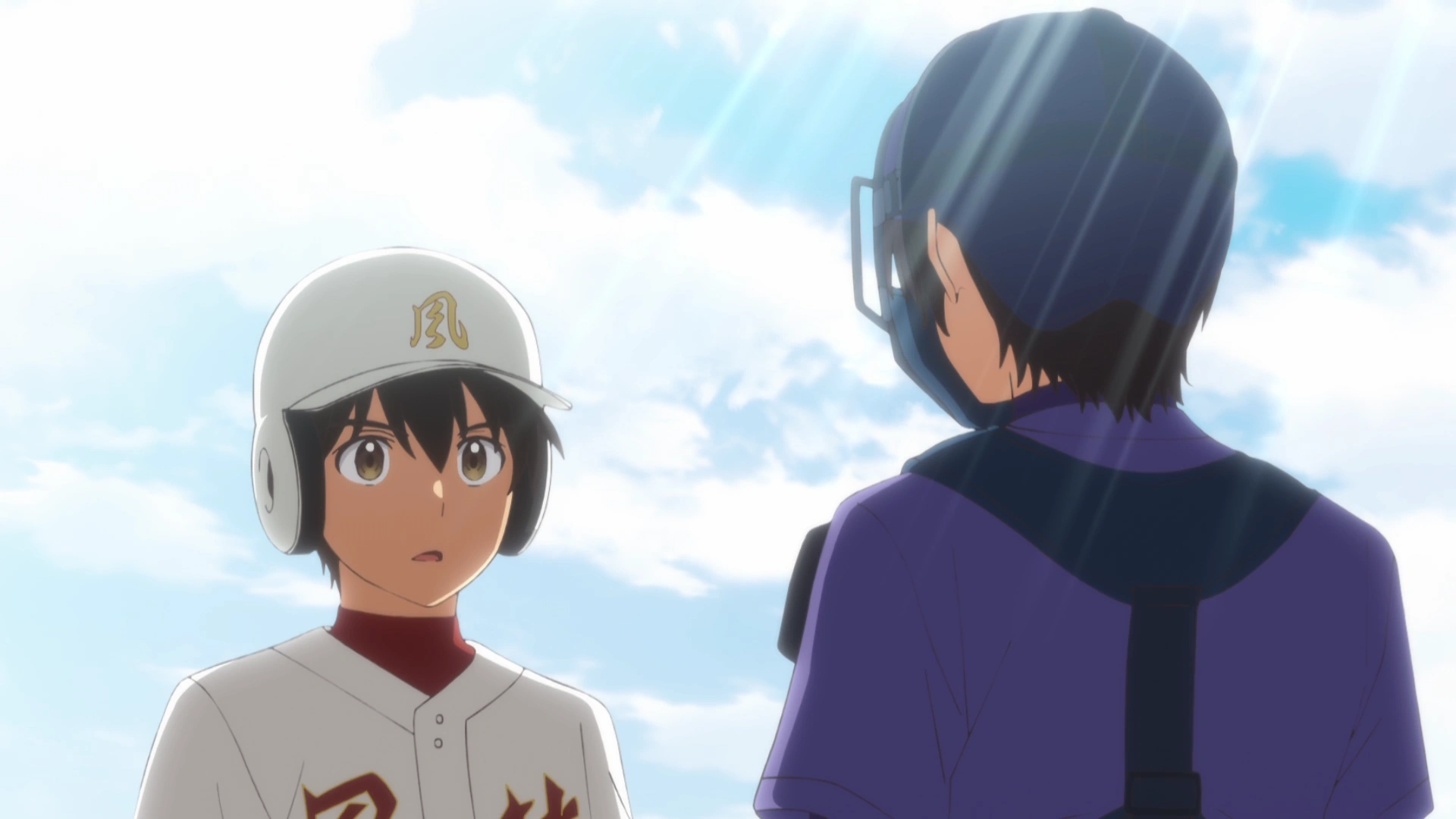 As the match against Tsujido continues, Fuurin is unable to score any runs off of Mario. The regular Tsujido team arrives at the training grounds, and assumes the match. They score six runs off of Mutsuko, and she changes positions with Nishina, who stops Tsujido's attack. At this point, Fuurin is getting used to Mario's fastballs, since that's the only pitch he can use due to the substitute catcher's inexperience. Tsujido's coach calls their regular catcher to join the match. Daigo and Mutsuko are surprised to see that Tsujido's catcher is Hikaru, who has recovered from his injury. However, as he talks to Daigo, he reveals that he can't pitch anymore due to the accident. As the match is about to resume, Daigo is left shocked in the batter box.
