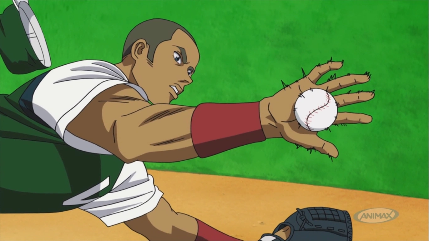Toshiya is chosen as a DH. The match against Venezuela starts. With the help of a bunt, Kyoshiro scores a run. Sato hits and breaks his bat, but is catch in a double play, which ends the Japan attack in the 1st inning. At the bottom of the 2nd, Harada manages to get 2 outs, and Silva is now at bat. Silva hits and Pedenio scores a run, which ties in the game by 1-1. Doumoto, the catcher, is injured during Pedenio's run and Toshiya substitutes him. Venezuela scores 4 more runs before the end of the inning. In the 2nd inning, Venezuela scores 2 more runs, its 7-1 for them. At the top of the 6th, Japan scores a run, its 7-2 now. At the bottom of the 6th, Goro enters the game.