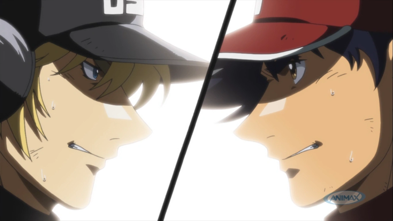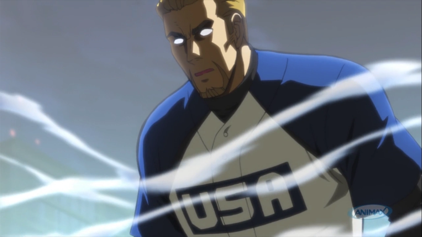 Gibson confronts Toshiya. Toshiya hits but his bat breaks, and the top of the bat hits Gibson's left breast. Gibson stands up immediatly and eliminates Itao. After that, Gibson says that theres no way that he will leave a wonderful game like that. Gibson ends the Japan's attack. At the bottom of the 16th, Goro lets the 3rd batter walk. Burns is the next batter, Goro lets him walk too. Back at the USA's bench, Gibson is taking some pills, Junior goes to talk with him, thereafter, Gibson passes out. Back at the game, Bolton makes a hit and gets another base, letting all the bases full with no outs. Gibson tells Junior to go out there and do his job, and that he will be waiting for the news about their victory, after that, Gibson is taken to the hospital. Junior is at bat. Goro starts confronting him. After many fouls, Junior hits and breaks his bat. The ball hits the foul pole. Junior scored a grand slam.
