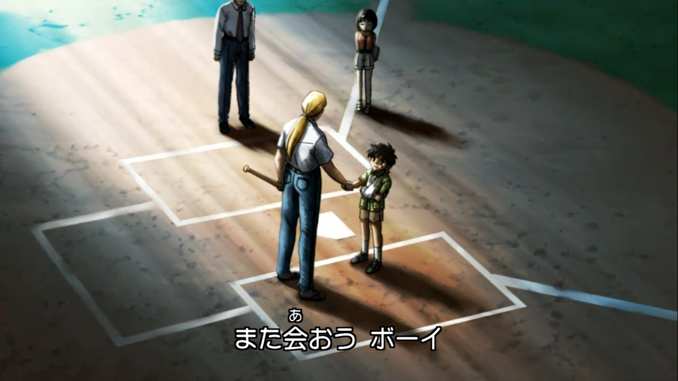The letter from Gibson was an invitation to go to America watch the Major All-Stars game, whose Goro accepts. As Momoko cant go with him, Shimizu goes to America with Goro, where she breaks his arm. After the game, Goro talks to Gibson and says that they will have a face off when he reaches Gibson's level.