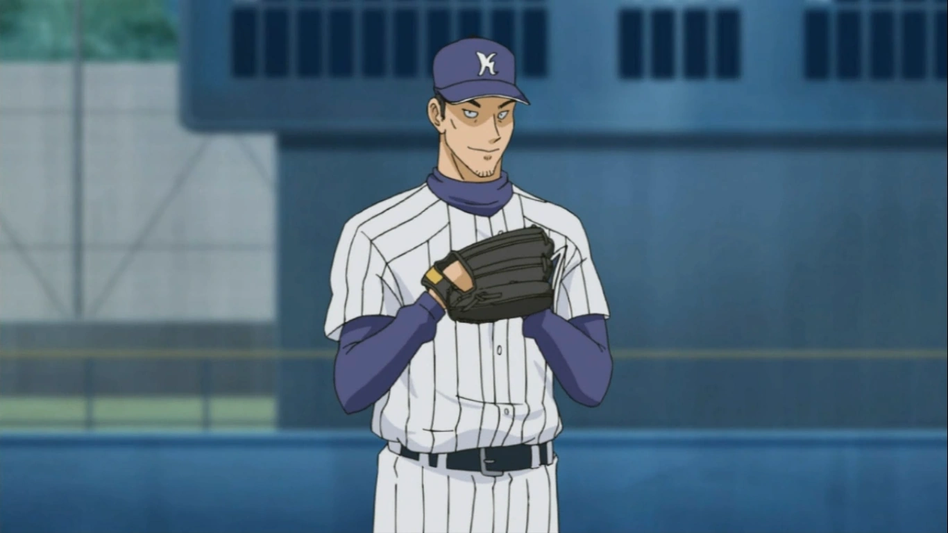 The practice match against the Varsity team starts, but nobody scores. At the bottom of second, Goro strikes out Sengoku.