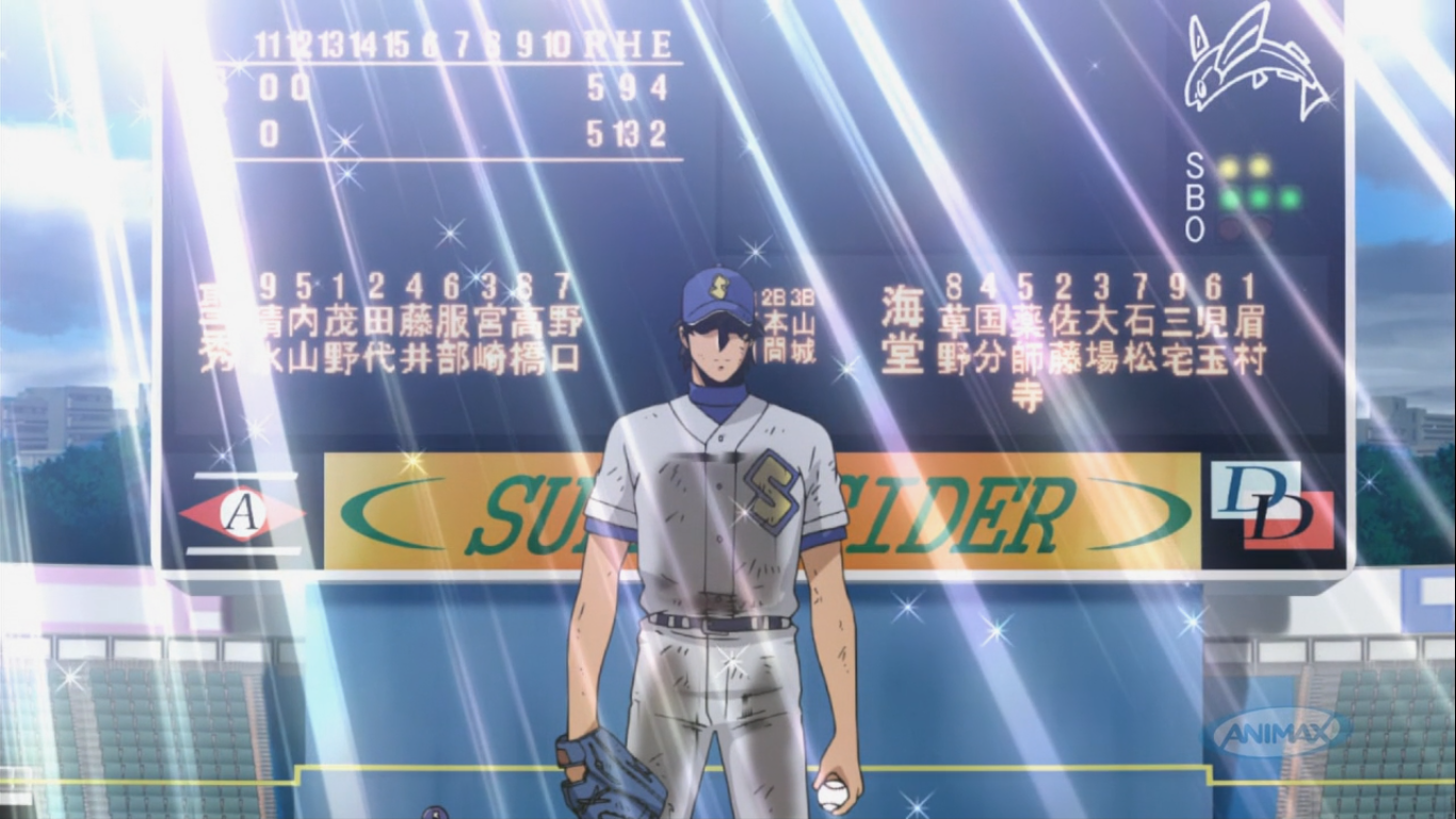 The referee allows Goro to continue pitching. Nobody scores during the 10th and 11th innings. Shimizu encounters Momoko at the stadium, Momoko tells her that she isnt prepared to see Goro doing that again. In the 12th inning, Goro confronts his Dream Island teammates. Goro is exhausted, the next batter is Mayumura. After seeing his dead father and talking to his teammates, Goro regains his will and strikes out Mayumura. After that, Goro faints and Kaido scores the victory run. Thereafter, Toshiya makes Goro promises that he will go to the mound again.